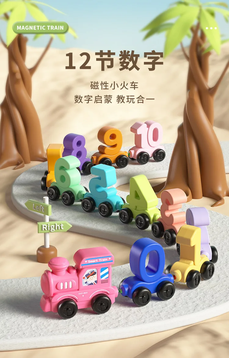 Magnetic Number Train Set Digital Learning Educational PVC Toys 12Pcs